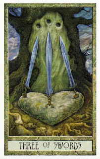 Truth revealed. Three of Swords. Old wounds and betrayals resurface. Three of Swords.